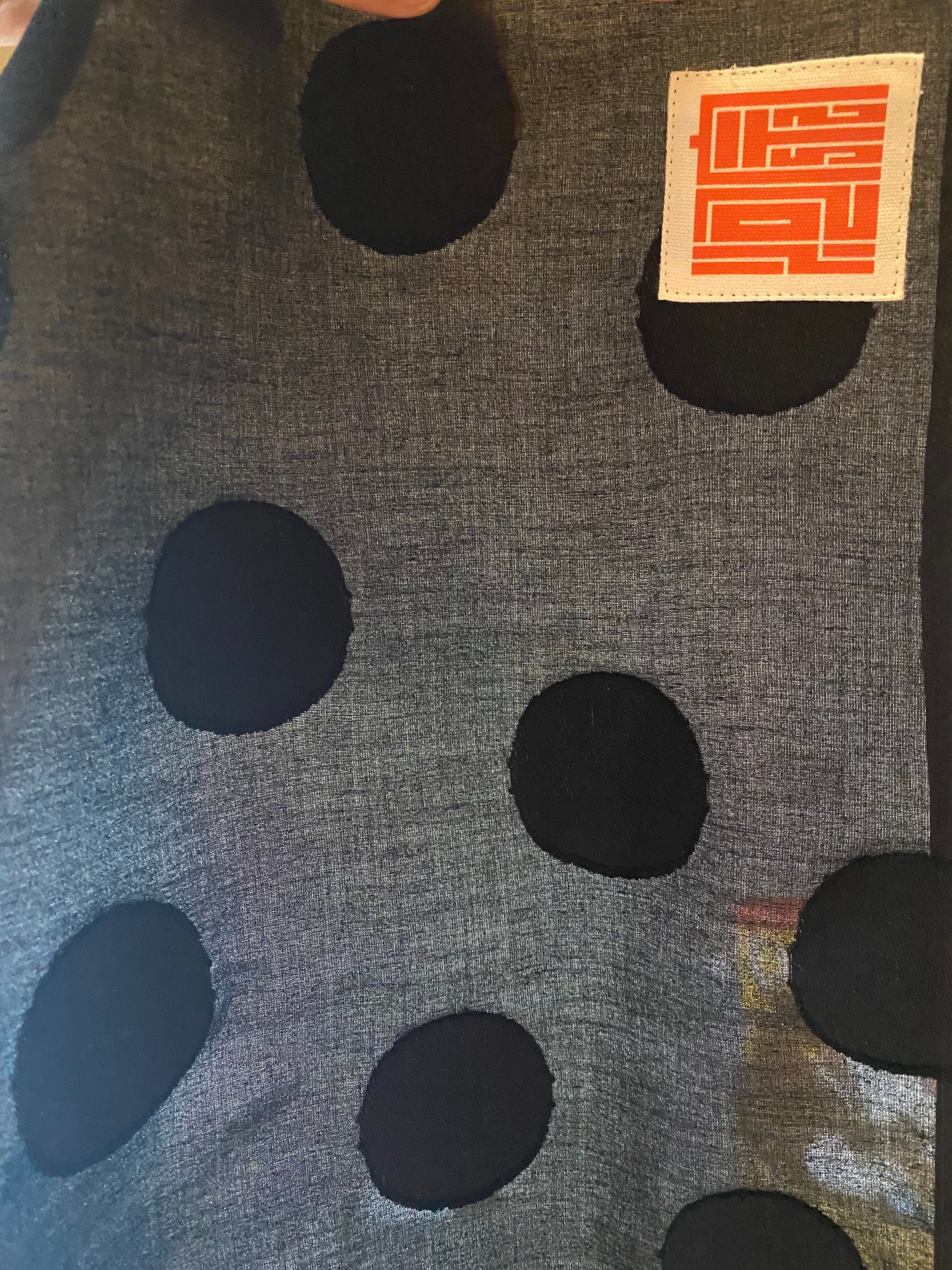 布地は若干光沢があり、かすかに透けるハリのある上品な素材です。色は黒で水玉柄です。