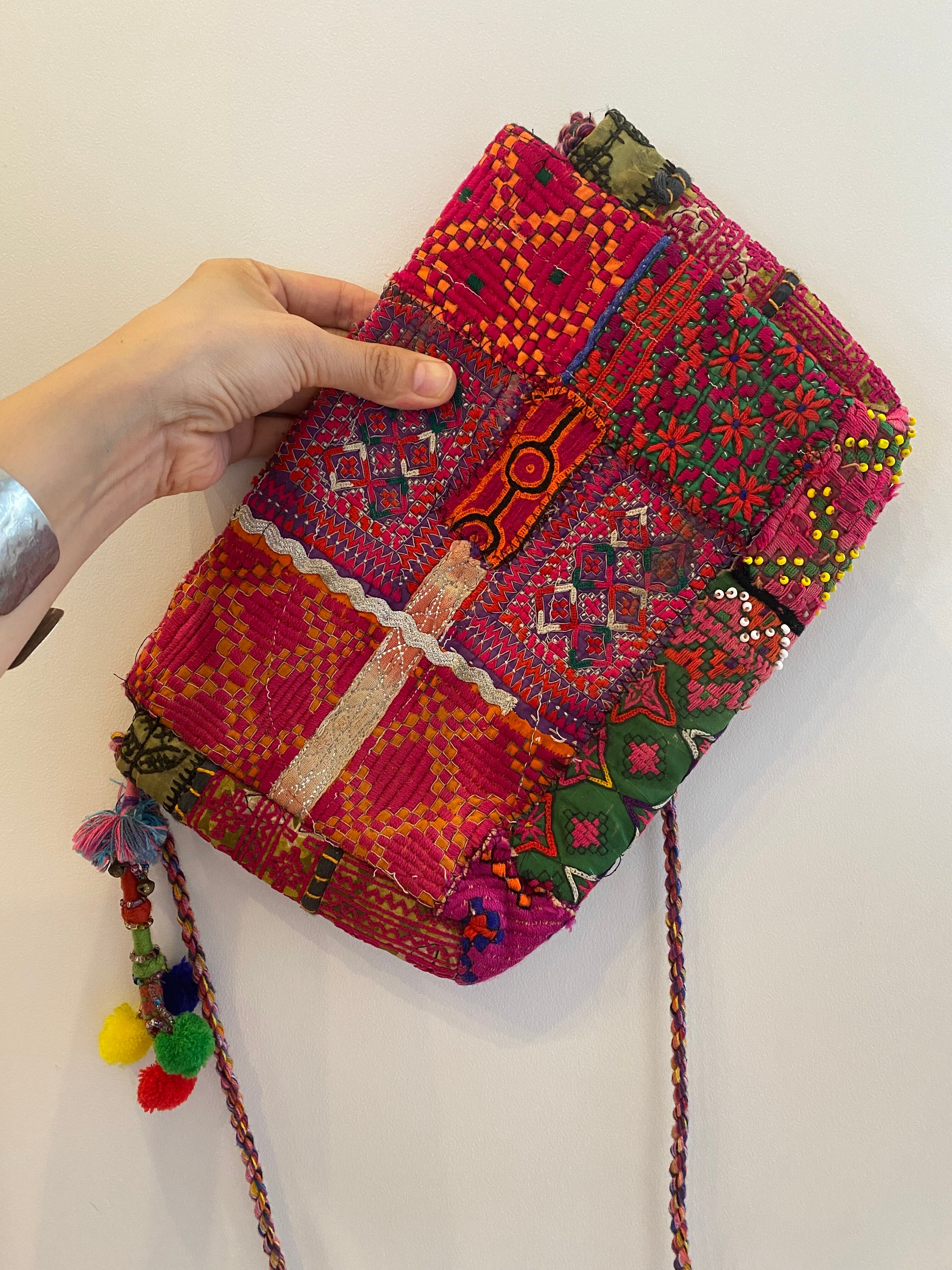インドのアンティークの布を集めて作られたアンティークのクラッチバッグです。