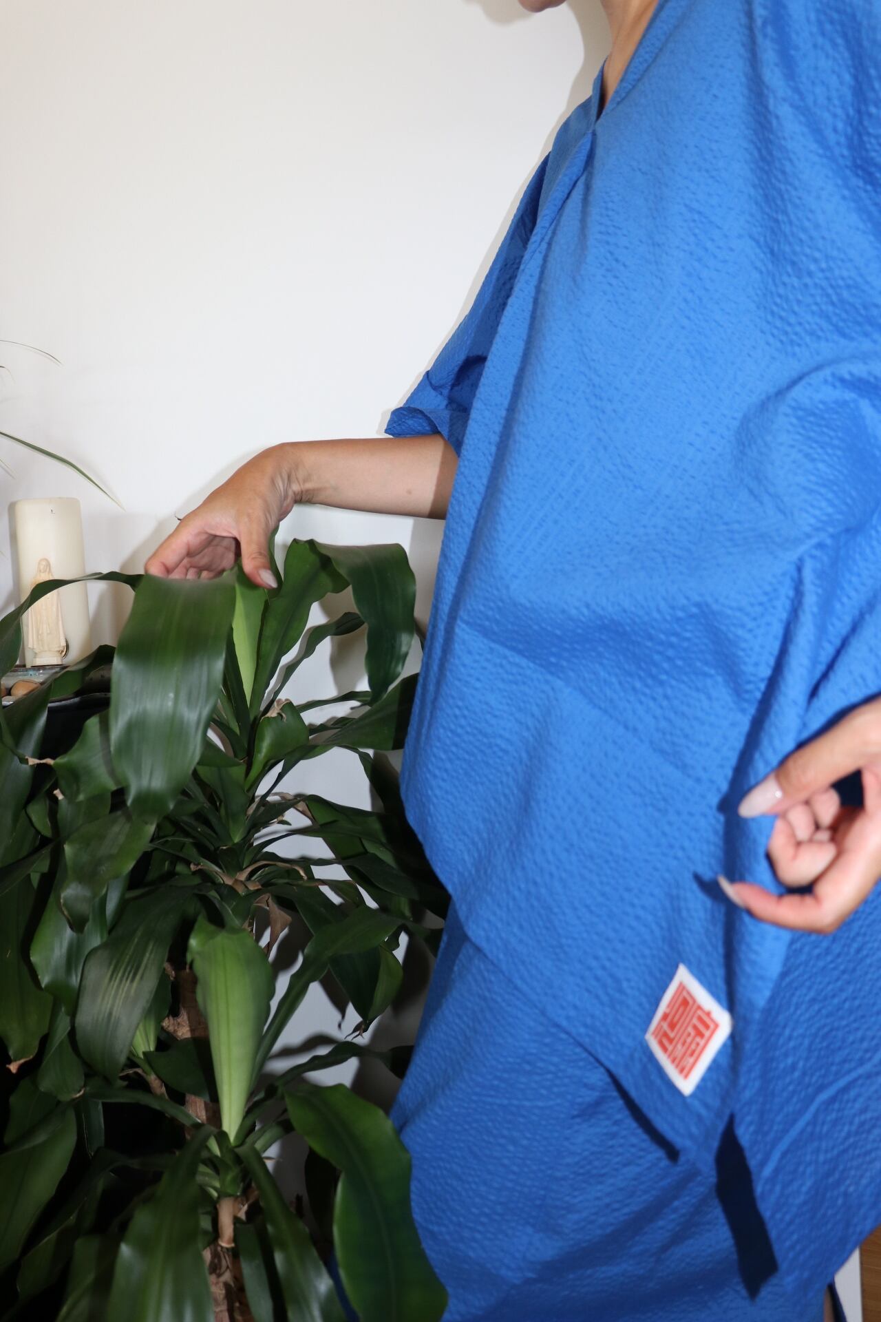この布地の特徴的な凸凹感が空気を纏い着ていてとても着心地がよく肌に馴染みとても涼しいです。