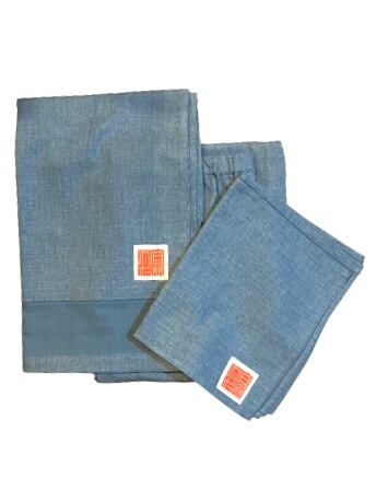 コットン100%で作務衣に使ってるあるような麻風の折りがしっかりしている素材です。ハリ感がありすこし硬めの布地です。