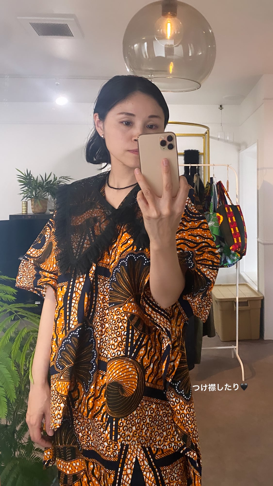RAKUI - Orange marble -は、アフリカの独特の鮮やかな色彩、緻密な模様の布を使用した存在感のある一枚です。